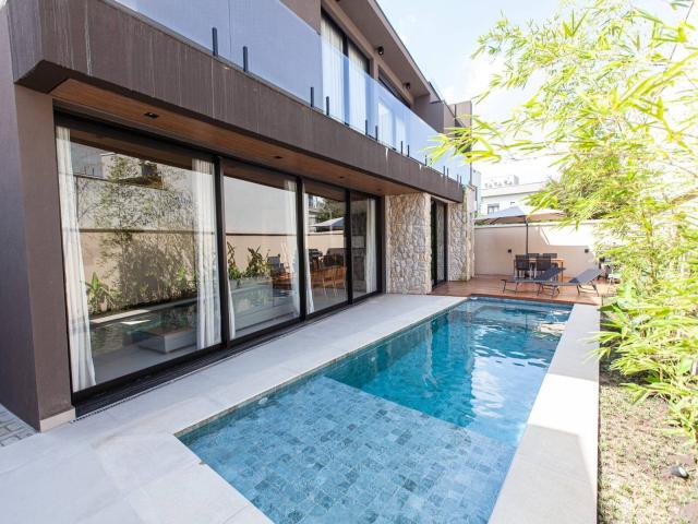 Final de rua plana, calma e sem carros. 400m A/C. 450M A/T *Aluguel inteira mobiliada (como nas fotos) Andar térreo - Suíte funcionário - lavanderia - cozinha - dispensa - Banho piscina - Área gourmet - piscina - sala estar - sala de jantar - lavabo Andar superior - 4 suítes - escritório - Todos armários e móveis de 1a. linha - Todos eletrônicos novos - Sistema fotovoltaica para geração de energia - Sistema aquecimento solar torneiras - Sistema aquecimento solar piscina (200% capacidade) - Cisterna para captação aguas fluviais (5mil litros) - Ar condicionado (Q/F) em todos os cômodos.